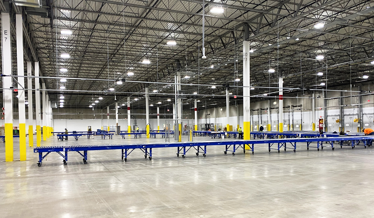 This 153,000 sf tenant fit-out project features 11 active trailer positions, interior van loading area, and drive-in ramp. The scope included major site work, utility upgrades, new fire suppression, fire alarm, and HVAC systems, new motion-activated LED lighting throughout the warehouse, remote EV charging parking lot, 24ft high sound wall, and 9,000 sf of new office space for team break rooms and training facilities.